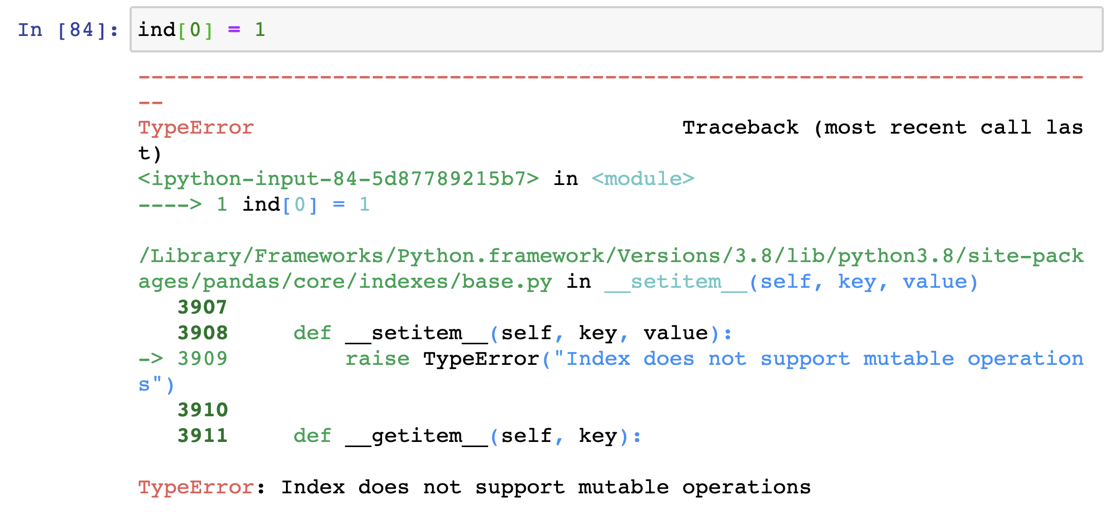 단, Index 객체는 일반적인 방법으로는 변경될 수 없는 불변의 값이다! Immutable