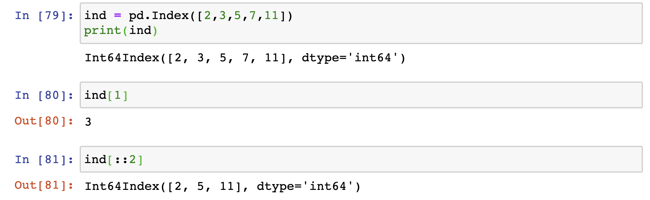 Index 객체는 그 자체로 흥미로운 구조체이며 불변의 배열이나 정렬된 집합 (중복 허용) 으로 볼 수 있다.